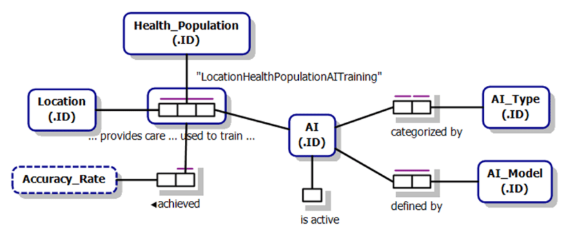 The relationship between location and Health Population is essential for training AI models. A single location may train multiple AI models using different Health Populations. Similarly, one location might support various Health Populations for AI training. Moreover, several locations could contribute to train a single AI model. Each combination of location, Health Population, and AI is unique within the dataset, serving as the identification scheme for Location-Health-Population-AI-Training.