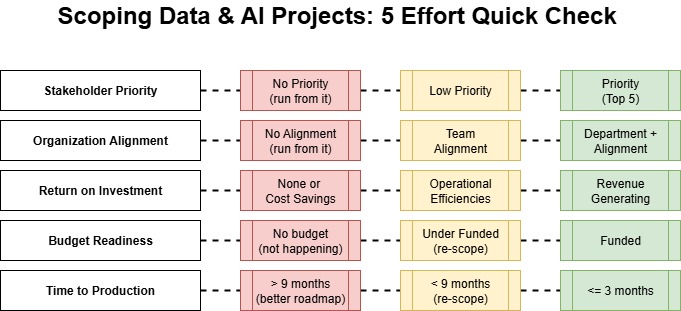Remember: the best Data and AI implementation in the world won’t save a project with unclear business objectives. But a well-scoped project with clear goals has a fighting chance at delivering real business value, regardless of technical complexity.
